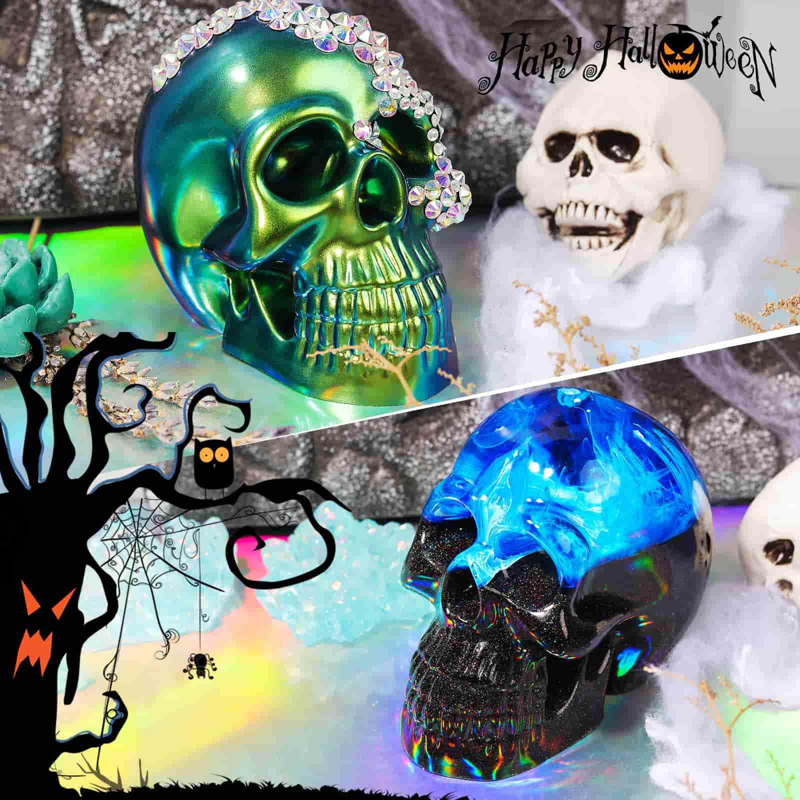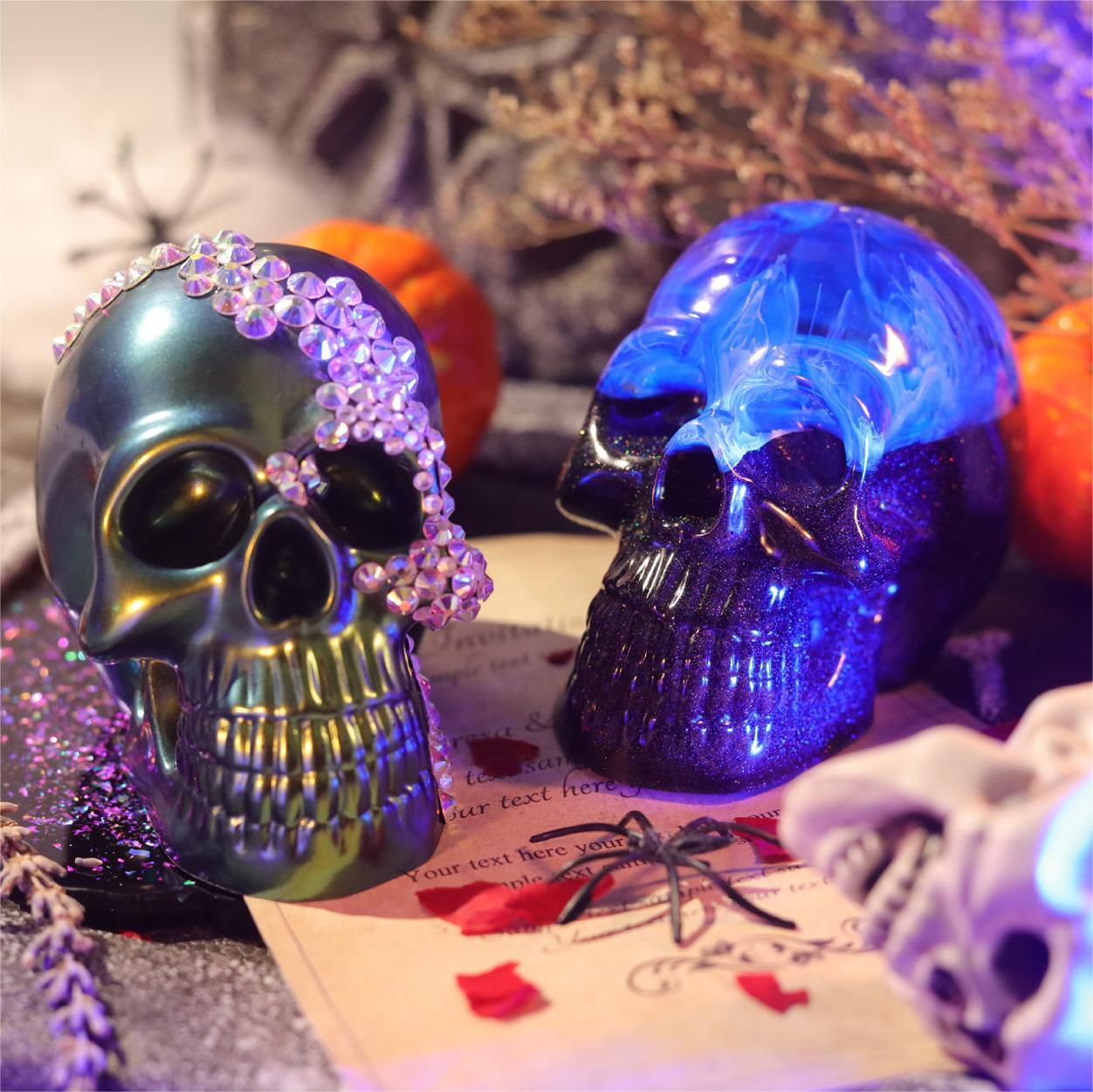 Make these spooky cute skull decoration for your Halloween tree this year! With intense chameleon powder, this ornament is sure to create a horrifying atmosphere to your Halloween display! This DIY craft is easy & fun to do! Have fun making skull decoration or other spooky ornaments!