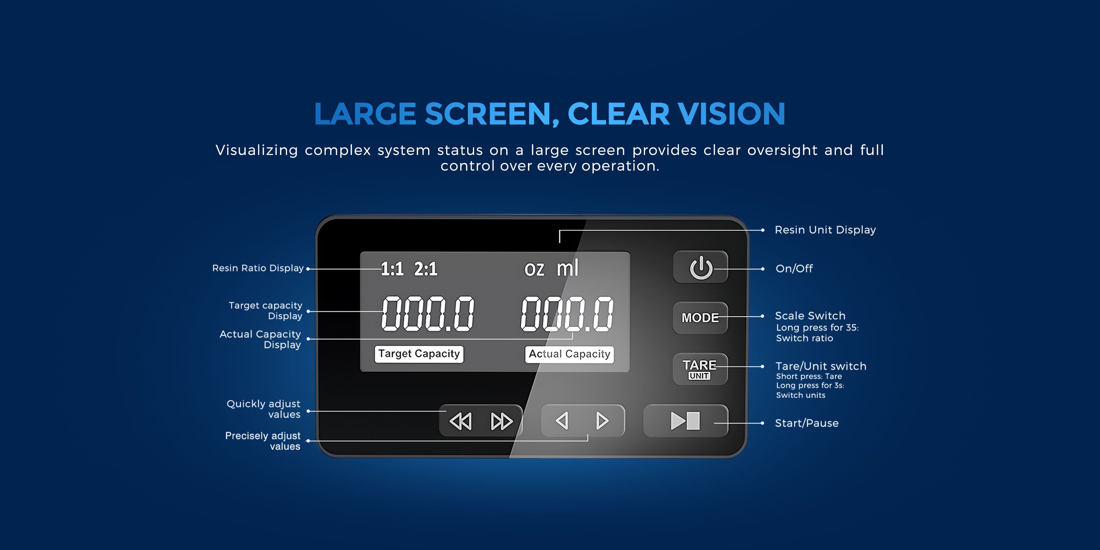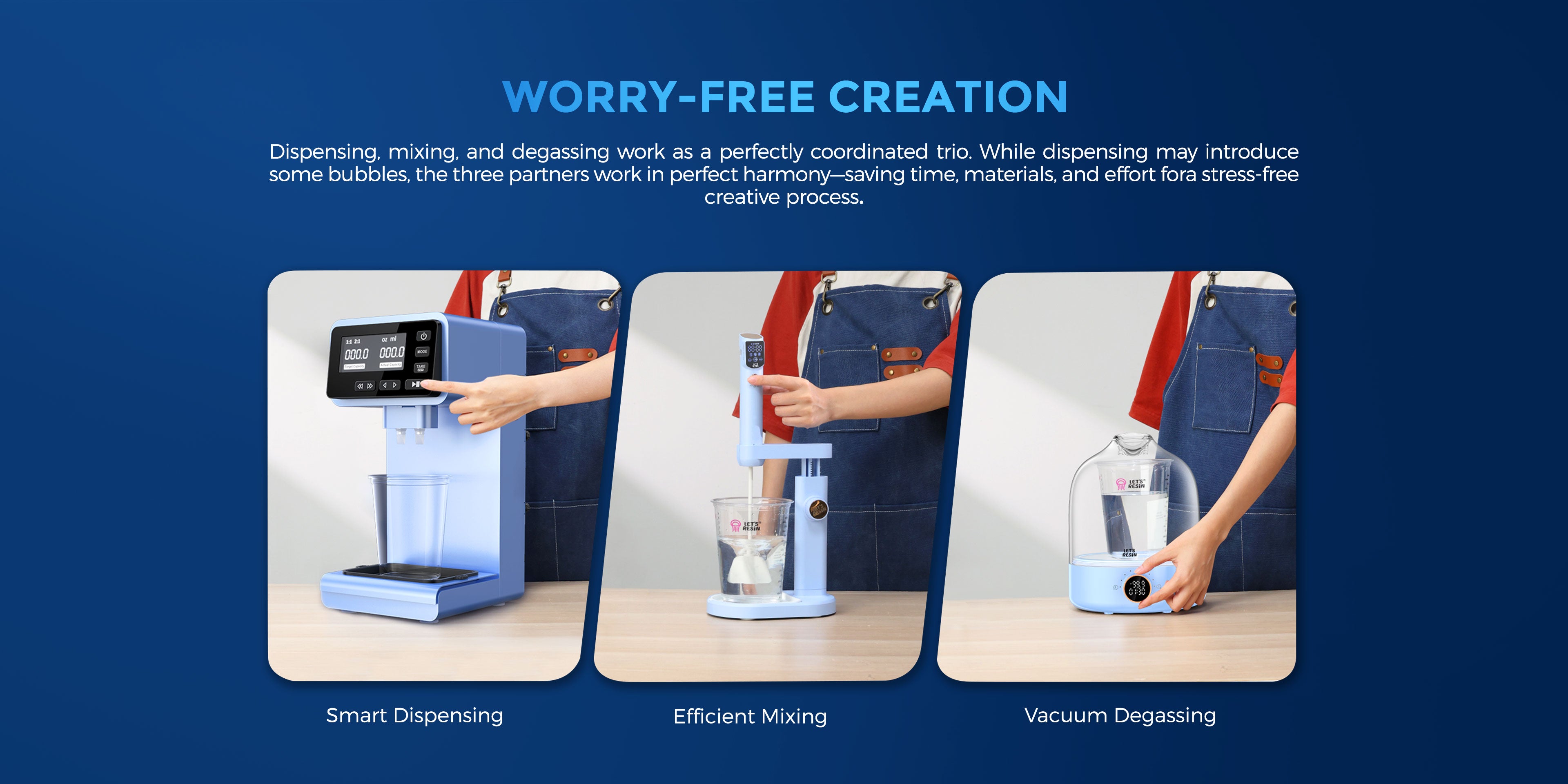 Smart Ratio, Effortless Creation: The high-precision sensor chip detects every subtle change in weight, ensuring perfect automatic resin mixing. No more complicated calculations or guesswork—each time, the system delivers the ideal resin ratio, letting you focus on creating with confidence and ease while minimizing waste.