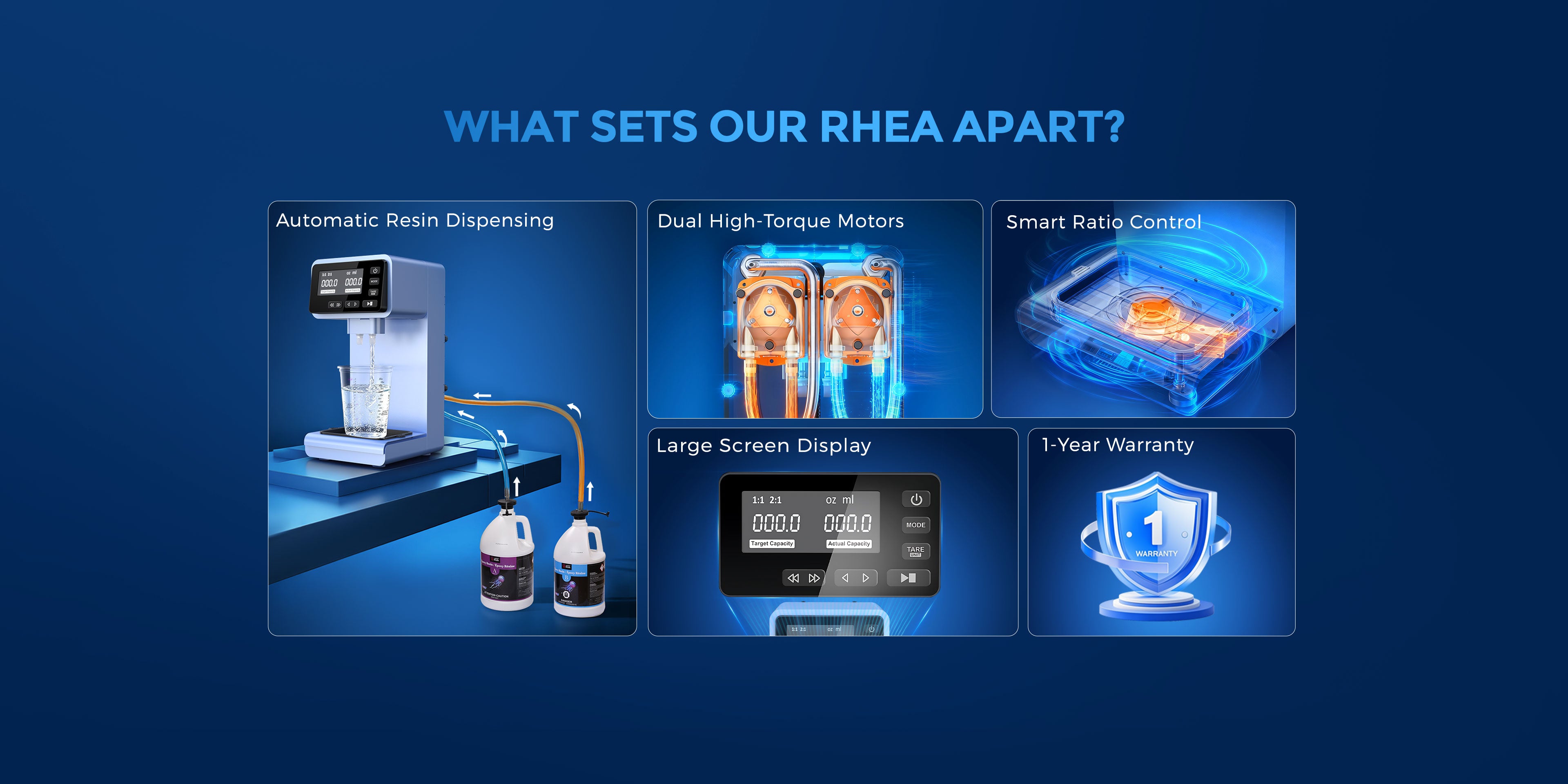 For creators tired of heavy bottles, messy pours, and ratio worries, the Rhea Auto Pump Resin Machine brings a new ease to your workflow. It draws, measures, and dispenses for you — effortlessly, accurately, and consistently. No more straining, no more second-guessing. Just a smooth, precise, and worry-free resin prep experience that lets your creativity take the lead.