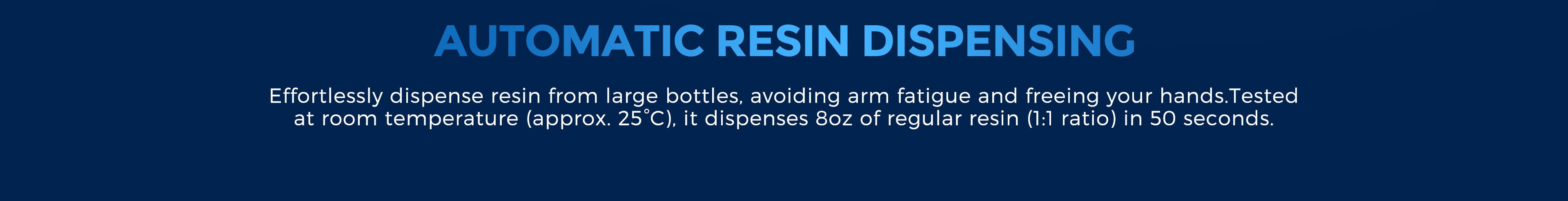 Automatic Resin Dispensing: No more manual pumping. No more effort. With one press, the automatic dispenser delivers a smooth, steady flow from large bottles—no force, no waiting, no monitoring. Tested at 25°C, it dispenses 8 oz of 1:1 resin in just 50 seconds, giving your workflow a lighter, faster start.