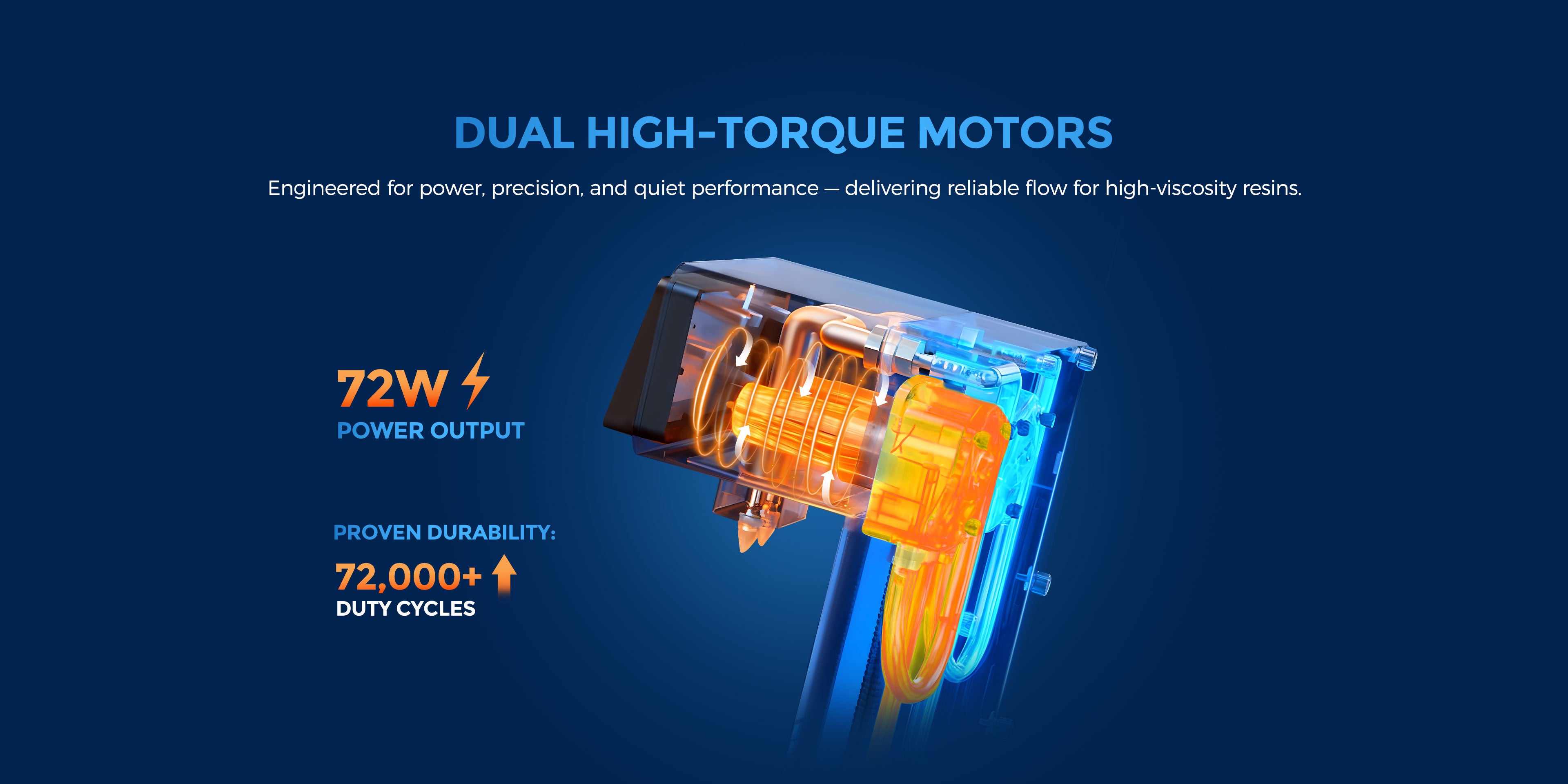 Dual High-Torque Motors Drive: This is more than a component; it is a testament to our commitment to your creative process. Rigorously engineered and tested for exceptional durability and whisper-quiet operation, it effortlessly handles high-viscosity resins, eliminating the frustration of mid-process jams. It delivers the reliable, stable power your art demands.
