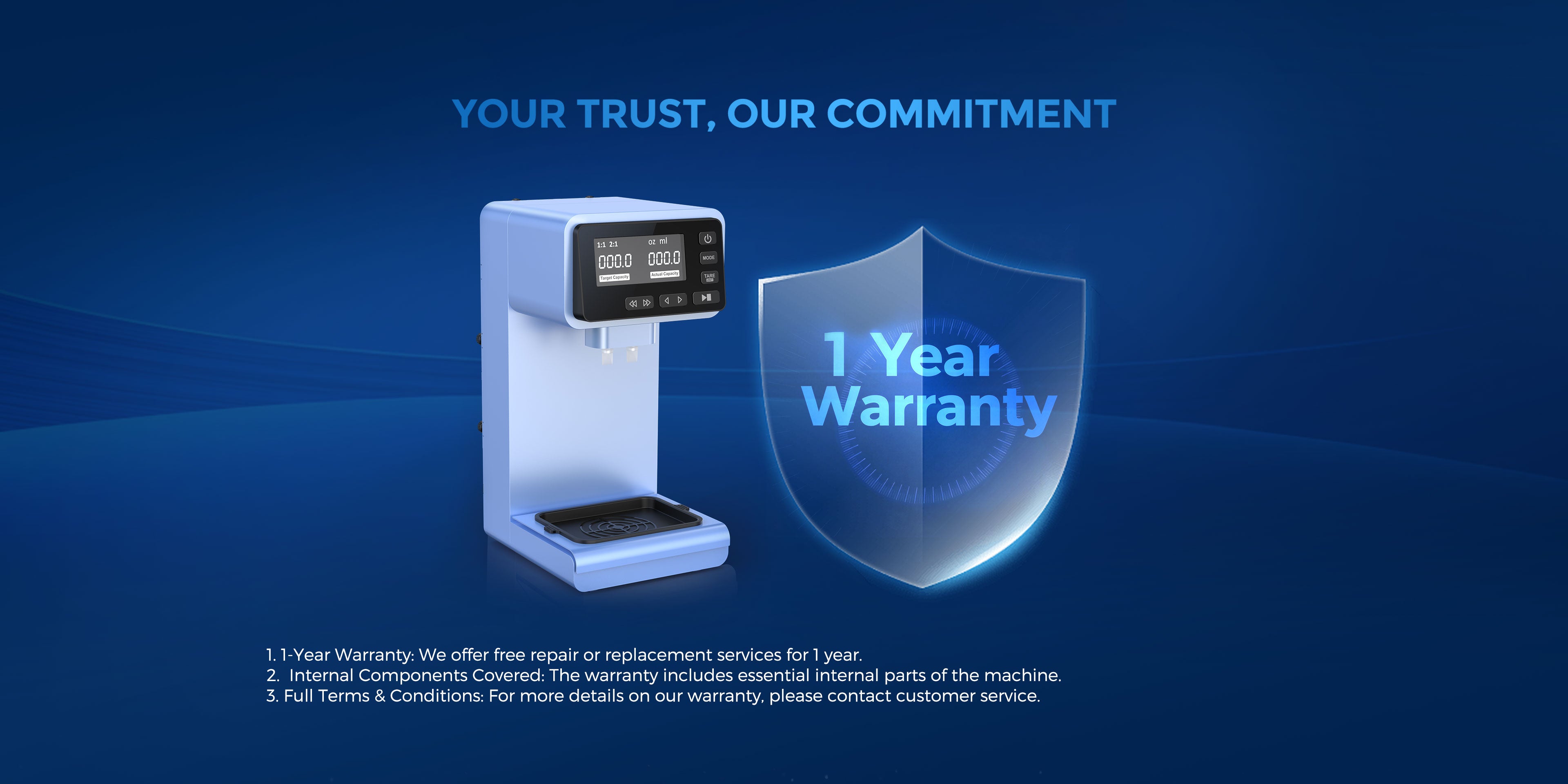 Your Trust, Our Commitment: We back your machine with a 1-year warranty, covering key internal components and ensuring free repair. For full terms and details, our customer service team is always ready to assist.