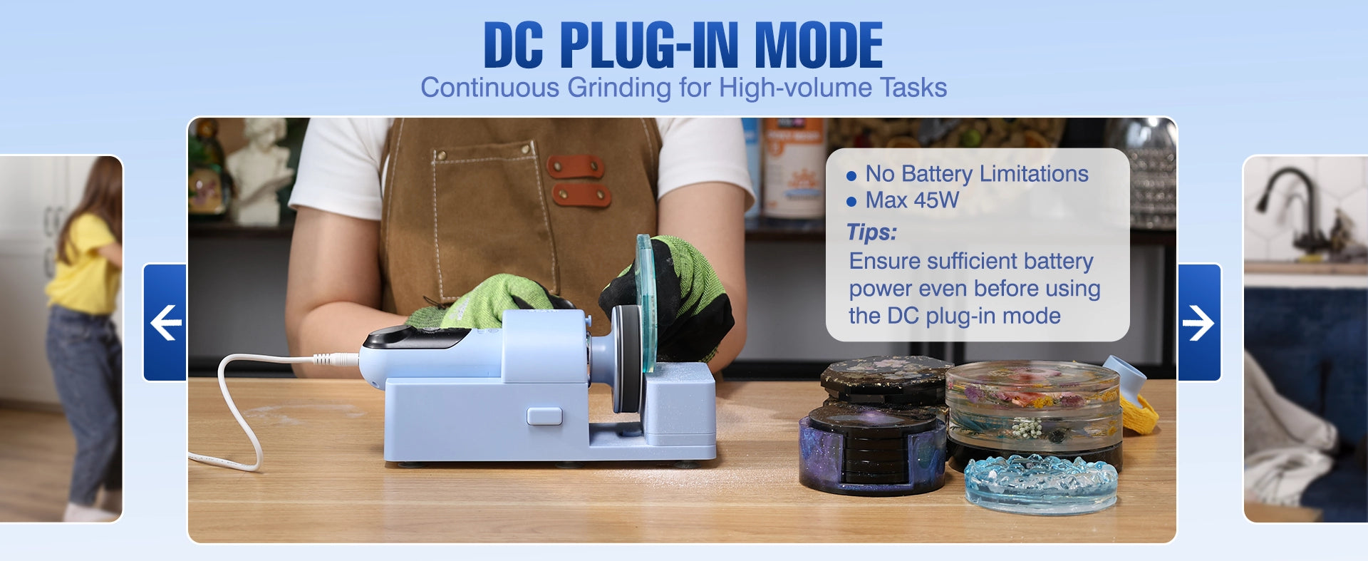- WIDE APPLICATION RANGE: This epoxy resin sanding kit excels at sanding and polishing resin artworks like spherical resin pieces, 3D ornaments, resin jewelry, coasters, resin blocks, keychains, pyramids, and dice. Beyond resin, this grinding and polishing machine handles jewelry repair, metal polishing/rust removal, knife sharpening, paint touch-ups, debris removal, and surface polishing—making it a comprehensive toolset for diverse projects. ( Note: Not recommended for oversized resin river tables.)